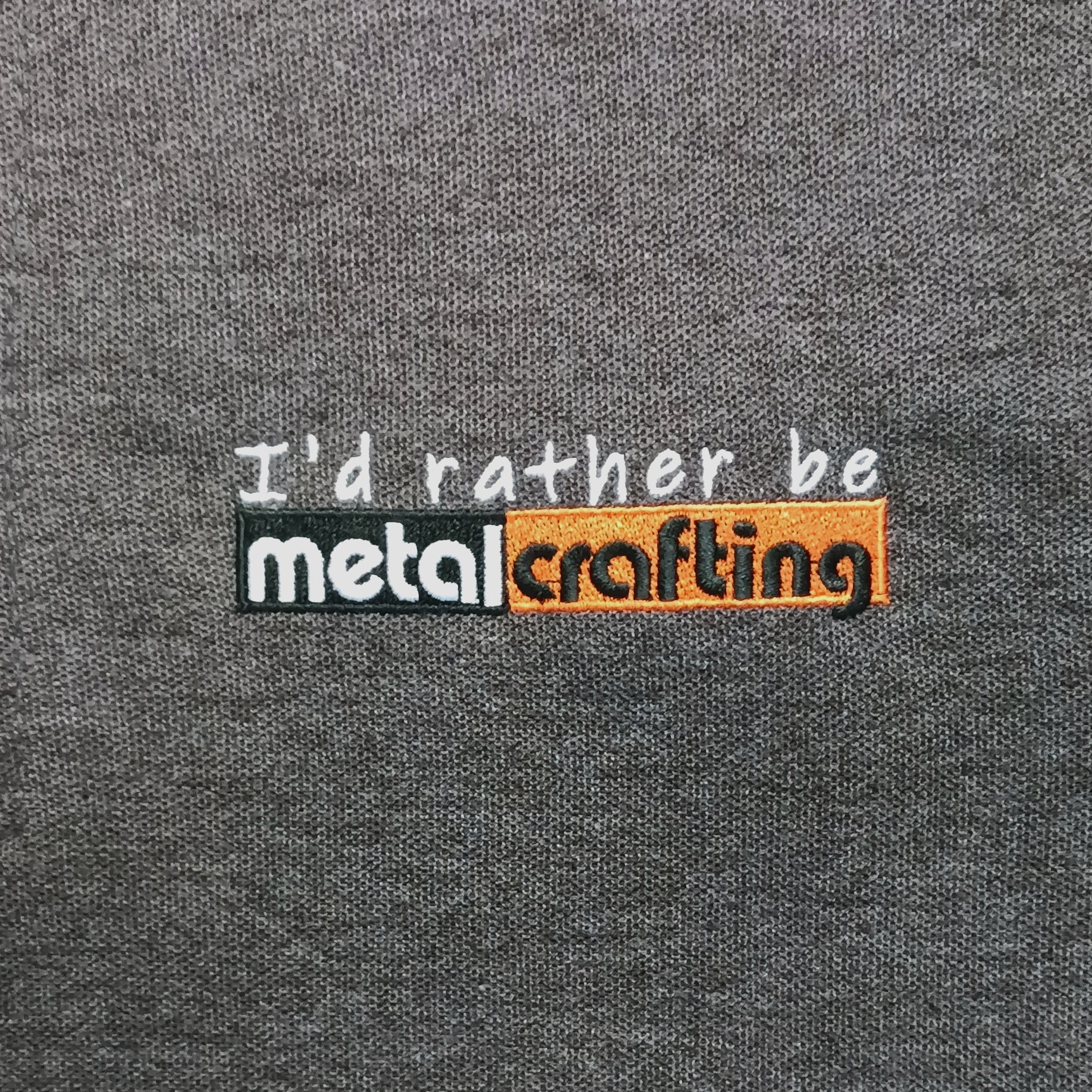 A high-quality classic polo t-shirt with embroidered “I’d rather be Metalcrafting” logo. Great for any metalcraft enthusiast.