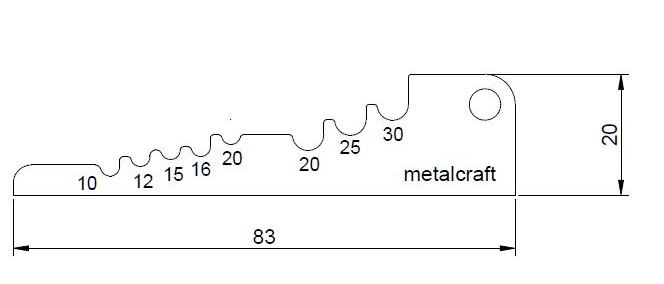 The gauge works with steel widths of 10,12,15,16 and 20mm for 3mm holes