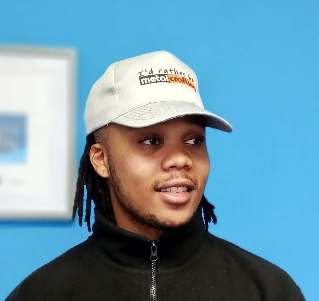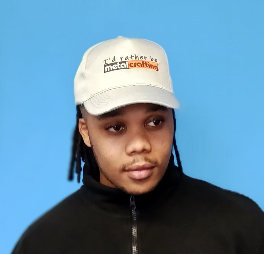Embroidered “I’d rather be Metalcrafting” adjustable 5 panal baseball cap.