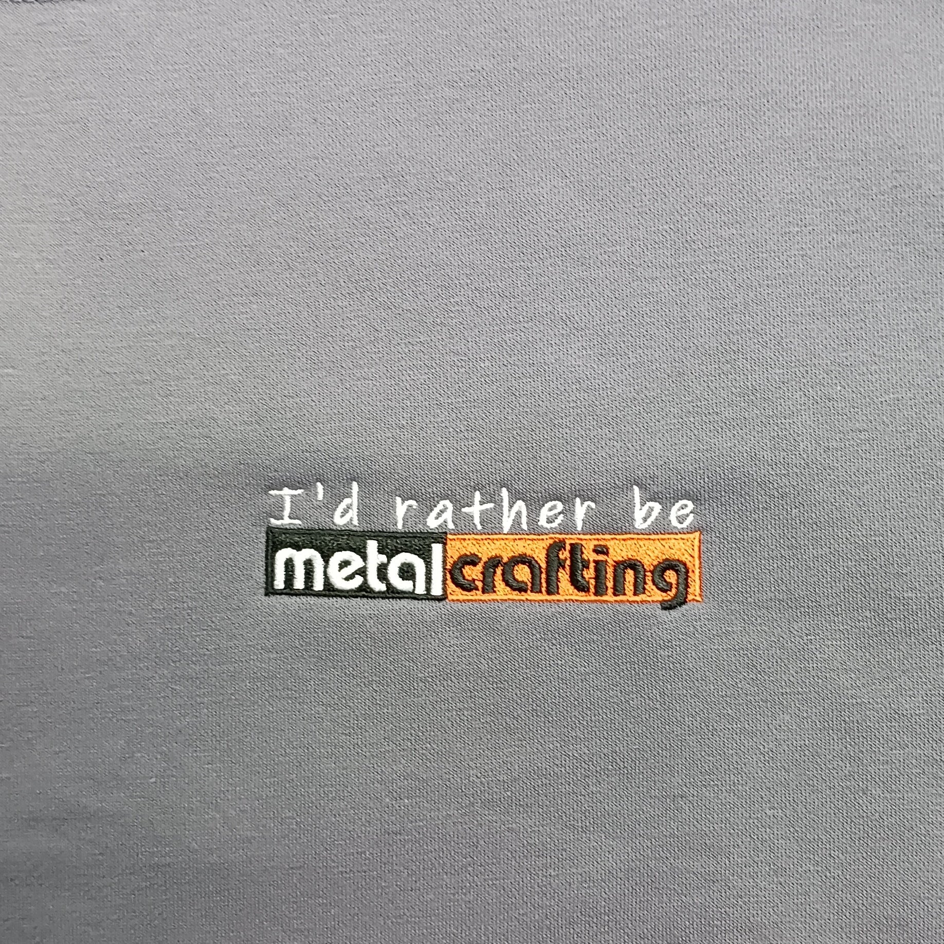 A high-quality crew neck sweatshirt with embroidered “I’d rather be Metalcrafting” logo. Great for any metalcraft enthusiast.