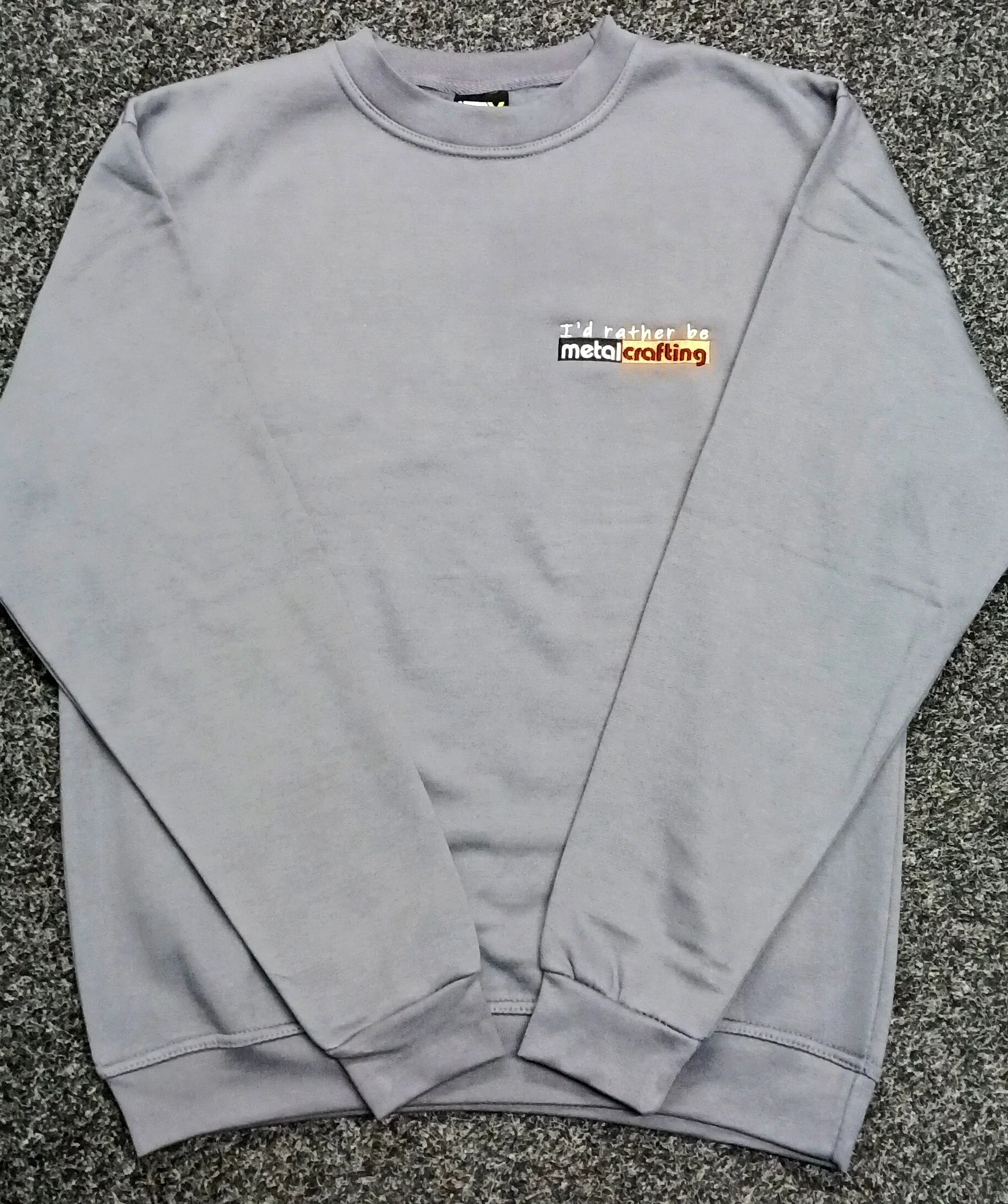 A high-quality crew neck sweatshirt with embroidered “I’d rather be Metalcrafting” logo. Great for any metalcraft enthusiast.