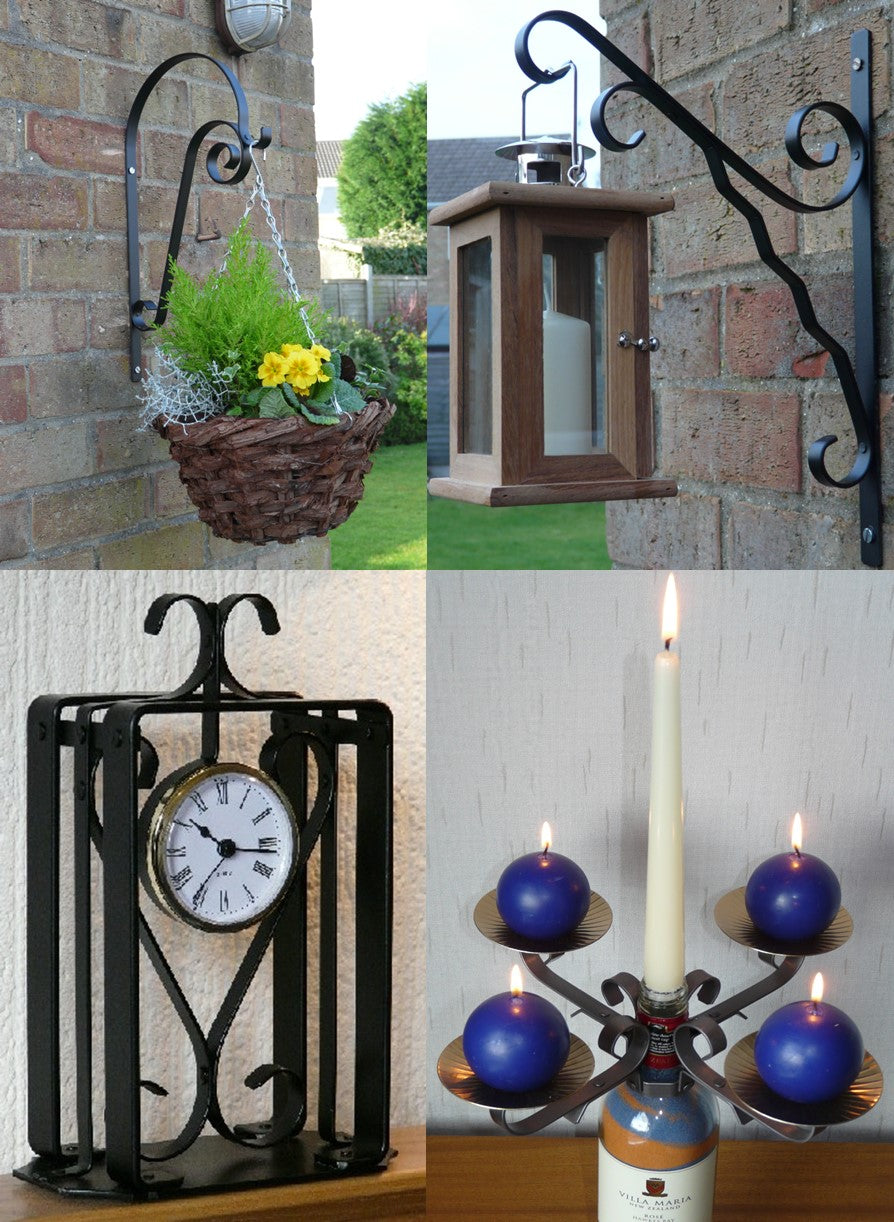 Three wrought iron projects in a kit for beginners. Make your own wrought iron candelabra, make your own decorative hanging basket bracket, make your own carriage clock.