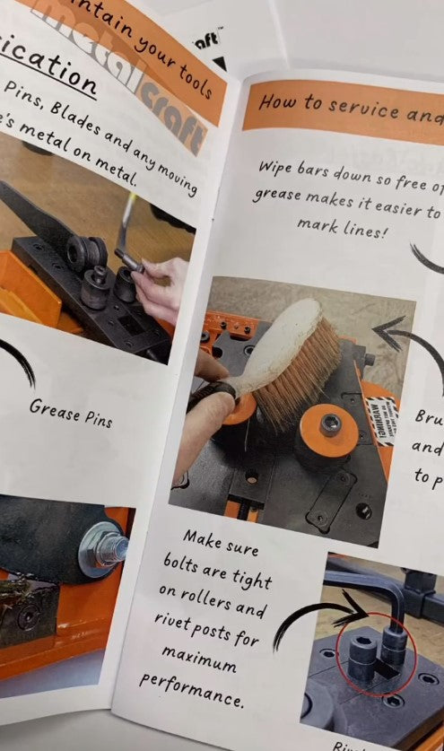 This handy 44-page picture illustrated booklet offers useful tips and tricks, Indepth information how to use Metalcraft Tools, Inspirational ideas, QR code links to website for design sheets, tool instructions and products, beneficial information to help guide you and much more, Including a timeline on Metalcraft!