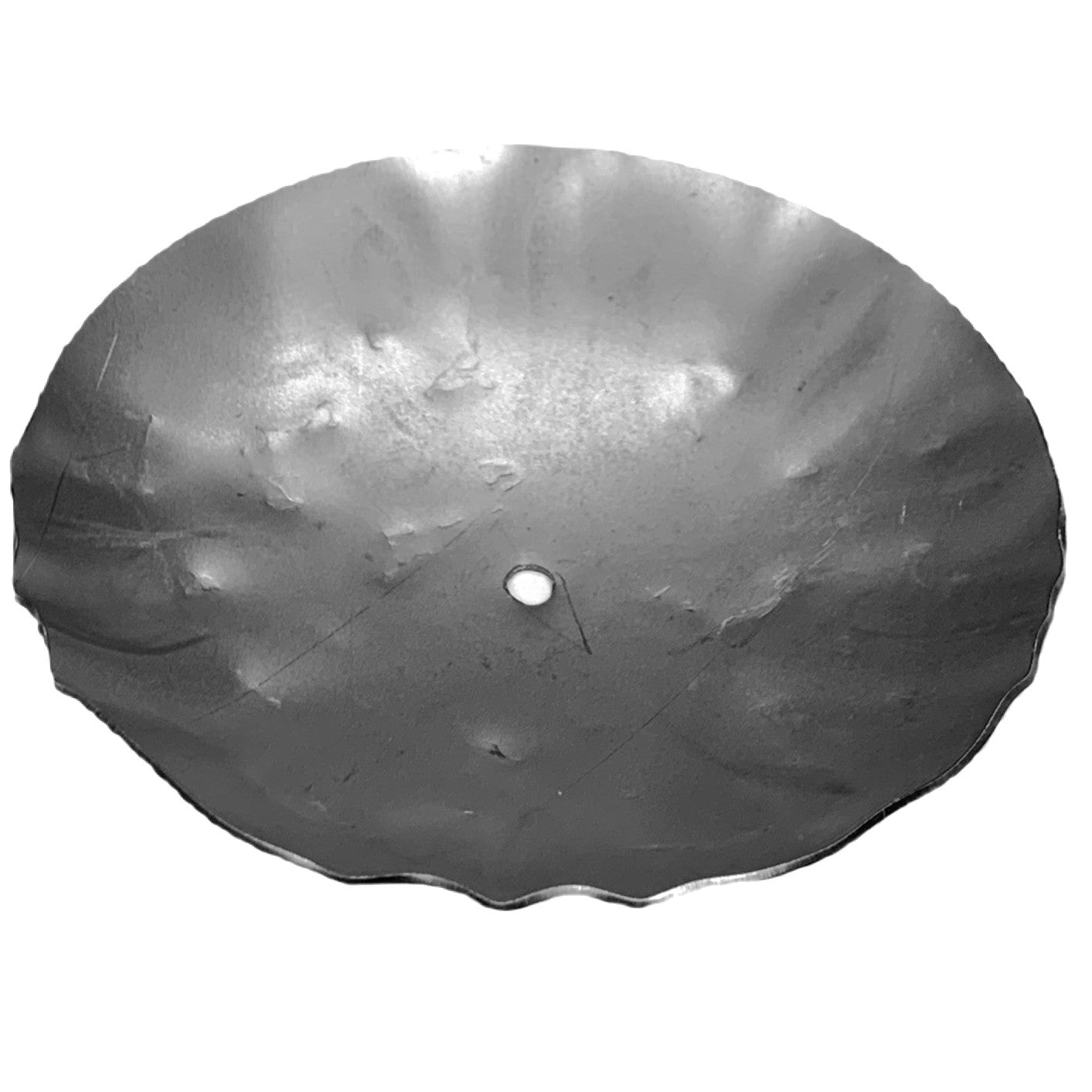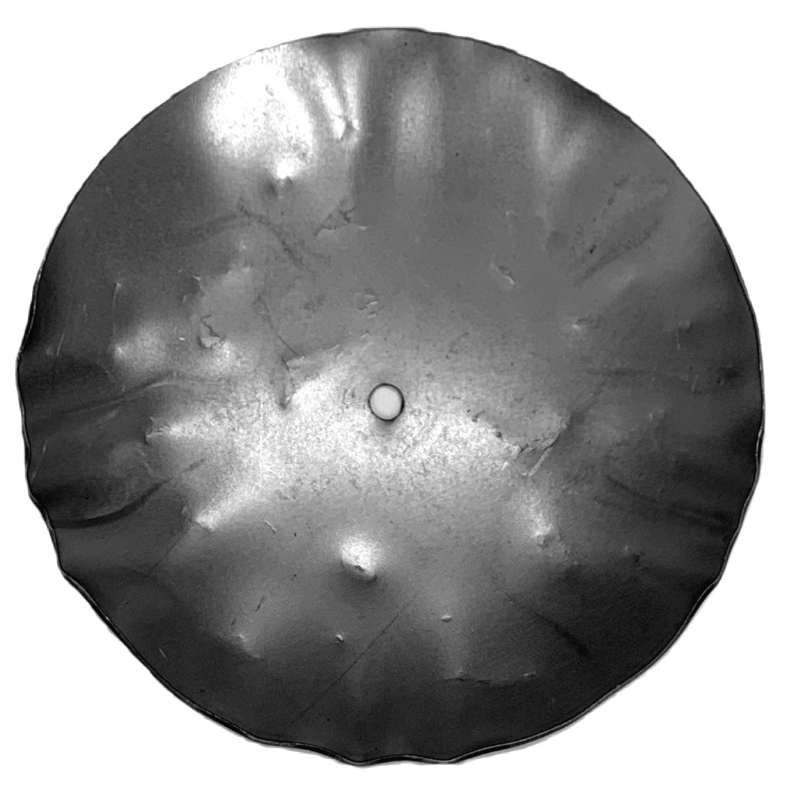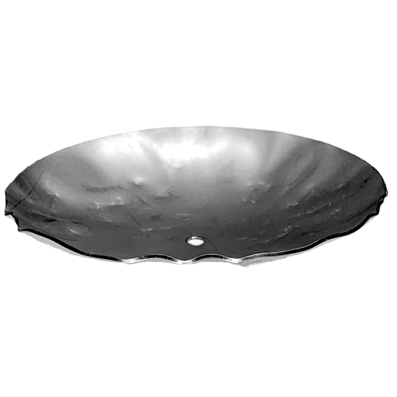 This small metal candle tray has a unique hammered look.